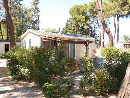 Dieses klimatisierte Mobilheim mit 2 Schlafzimmern ohne TV für 6 Personen (max. 4 Erwachsene) ist ideal für Familien. Es verfügt über ein Elternschlafzimmer, ein Schlafzimmer mit 2 Einzelbetten sowie einen Schlafplatz für 2 Personen im Wohnzimmer.